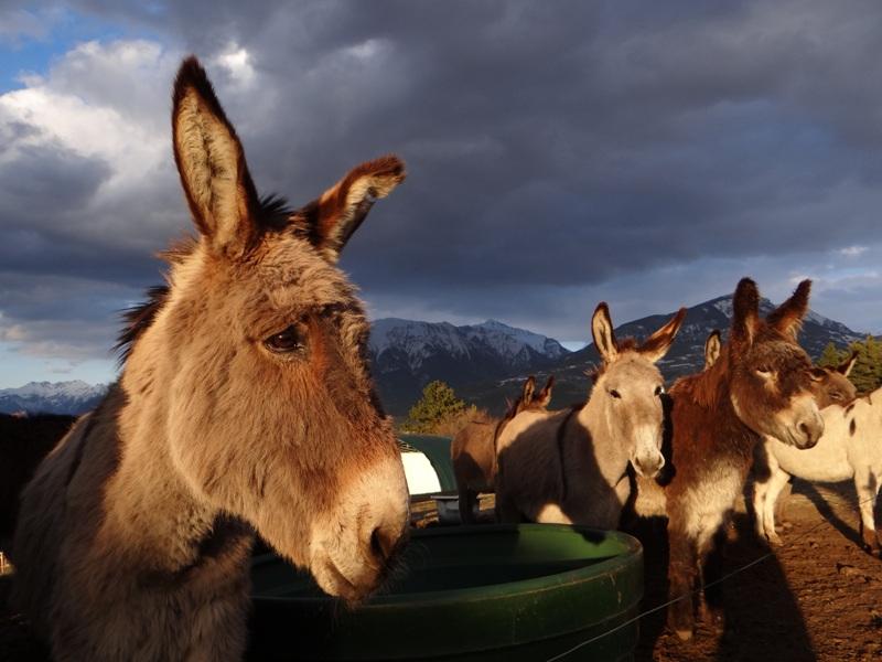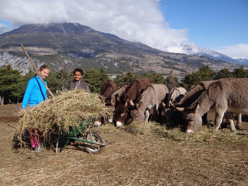 Breeding of donkeys, llamas, rabbits, hens and geese in the village of Crots, near the Lac de Serre-Ponçon.