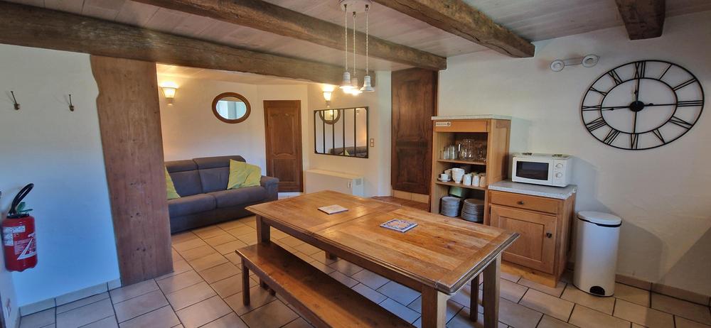 In a set of buildings of character, gite built on 2 levels has d an independent entrance, a large living room with kitchen corner, space meals and relaxation area. Freezer, dishwasher, microwave oven, common washing machine. 3 bedrooms with one on the ground floor (3 2 beds) and 3 beds 1 pers. 2...