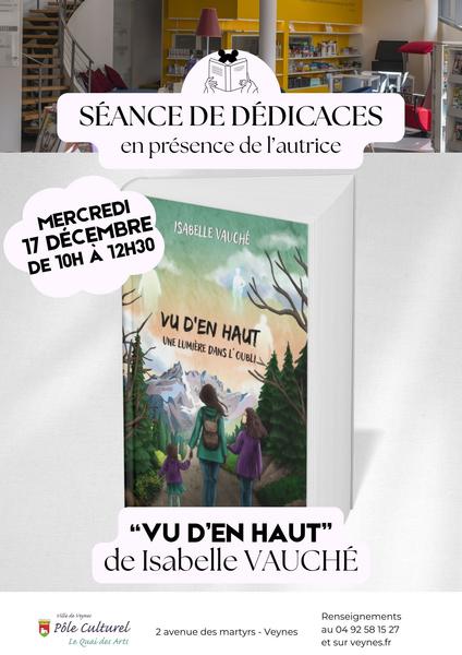 Retrouvez Isabelle Vauché pour une séance de dédicaces pour son dernier livre : 'Vu d'en haut'.