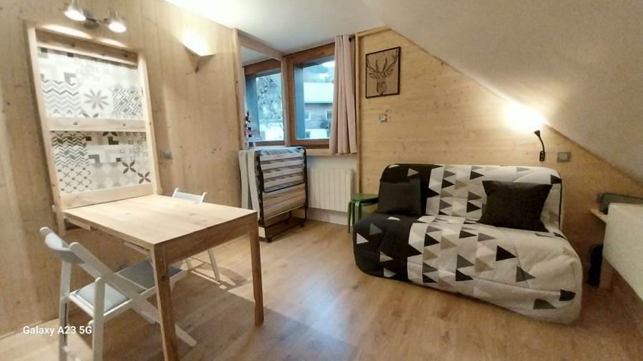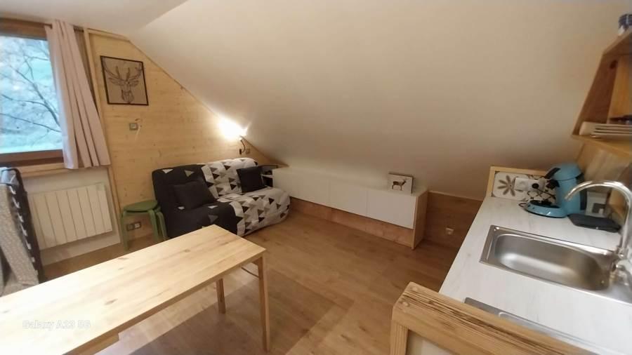 A proximité de la placette et de tout les commerces, ce studio très bien équipé pouvant accueillir 3 personnes est composé de :