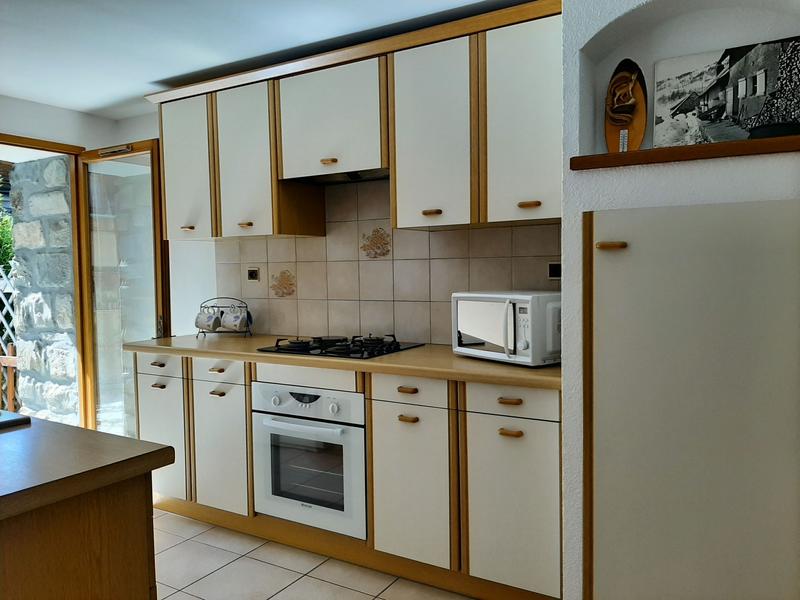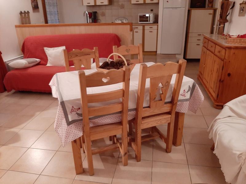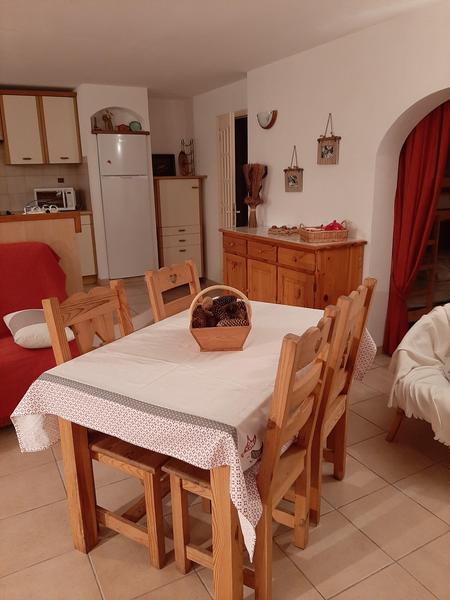 This comfortable gite comprises a living room/kitchen with access to a terrace, a bedroom with a double bed (140x190) and wall cupboard, a 'mountain' corner with bunk beds, a bathroom, separate toilet, access corridor to the flat from the terrace, communal parking.