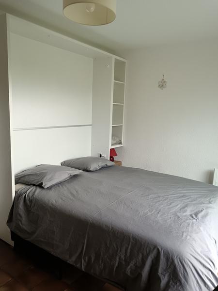 Large studio for 2 people in very quiet residence, facing the Embrun mountains. Large west-facing balcony with garden furniture. Private car park. Large individual cellar for storing bikes, ski equipment, etc.